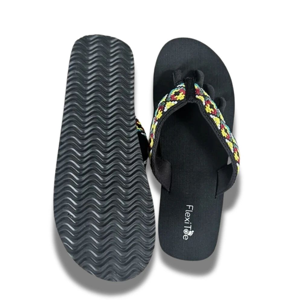 FlexiToe Flow – Jamaica är en snygg och ergonomisk sandal som kombinerar komfort med färgstark design. Tåspridaren ger tårna en naturlig position och håller sandalen säkert på plats.