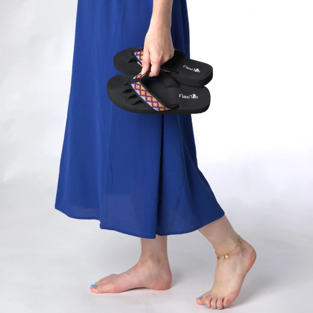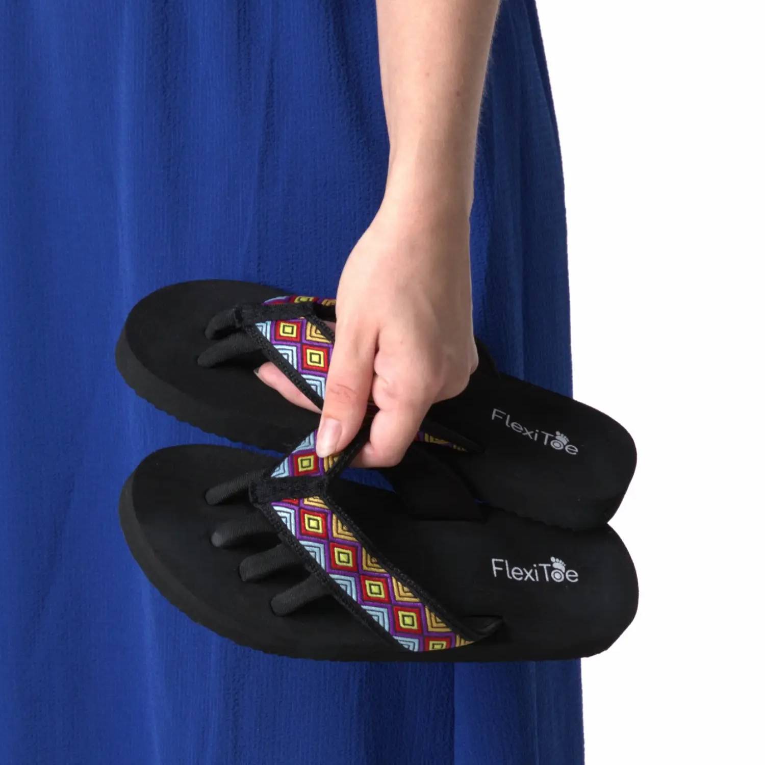 FlexiToe Flow är snygga och ergonomisk sandaler som kombinerar komfort med färgstark design. Fotriktig konstruktion med tåspridare hjälper tårna till en naturlig position och ser till att dina sandaler sitter på plats ordentligt.
