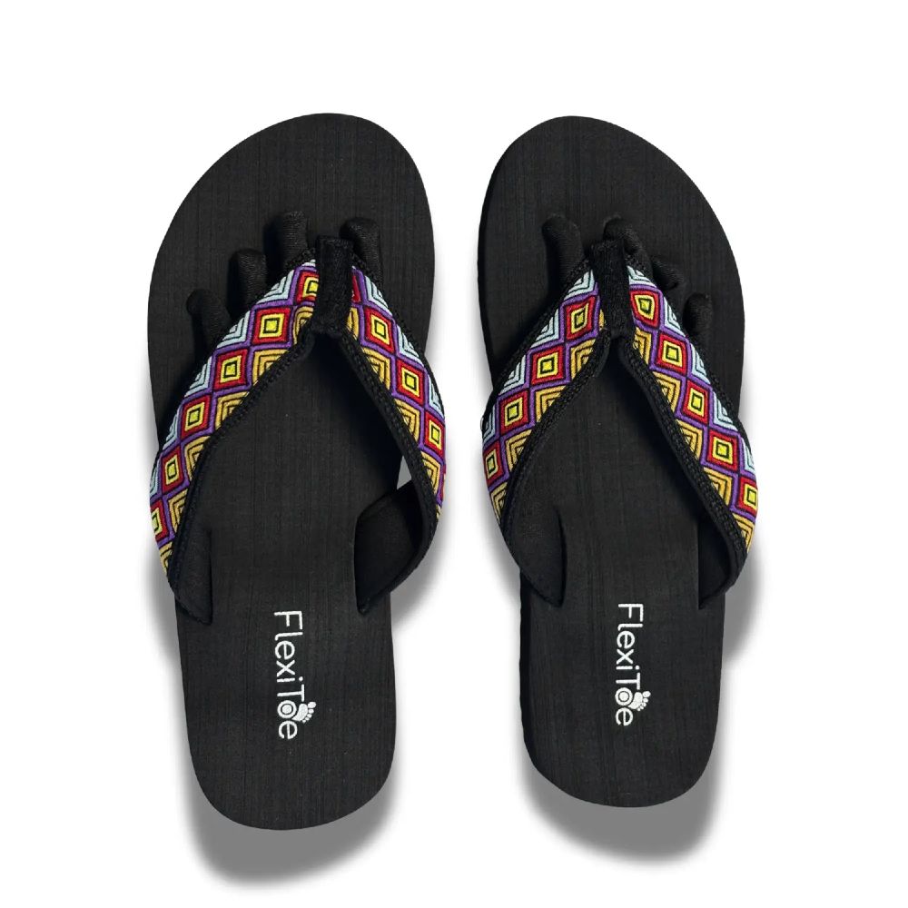 FlexiToe Flow – Retro Squares är en ergonomisk och färgstark sandal som kombinerar komfort med retroinspirerad design. Den fotriktiga konstruktionen med inbyggd tåspridare hjälper tårna att hitta sin naturliga position och ser till att sandalen sitter säkert på foten.